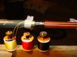 i did however try something different that i have never seen before, when installing the eyes, i took my red and black threads and rolled them as one and wrapped over the eye feet, looked kinda like a candy cane , or tiger (almost) wrap, ok kinda looked like it.