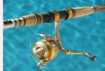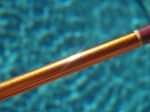 Here's a donation rod I just finished for my son's high school baseball team. This will be one of the silent auction items next month. Batson Rainshadow 8' 8-15 lb. (although it feels more like 10-20 lb) blank painted in a root beer finish. Fuji GLVLG spinning guides and PacBay graphite reel seat matched with a Bass Pro Shops EX4000 spinning reel. Split-grip hardwood handle assembly made with Spalted Maple and Zebrawood with ivory and black inlays (thanks Mark B. for the info and tips) and 6 coats of Tru-Oil. Guide wrap colors, dark brown NCP A and gold NCP A. Trim colors, dark brown nylon A, gold nylon A and tan A. Continuous tiger fade with dark brown NCP A and gold metallic electra A under with dark brown nylon A and gold nylon A overtop and (and of course bear paw prints). Fun project. Randy.