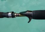 6'6" Trout/Redfish wadefishing rod...micro-spiraled. FTU Greenrod, 6'6" APM1 (medium) IM10...Fuji T-KTWAG 8 Stripper, 4.5 TLSG runners (spiraled of course)....EVA grips, Pac Bay split reel seat that I lightly marbled...Tiger Wrap in the split area with Dk Brown NCP and Glitzy gold underneath with a black top thread...rod weigths in at 3.5 oz...