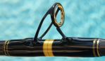 I just finished this one up for the Toys For Tots campaign. Calstar Grafighter 700 ML (7' 20-30 lb.), hypalon grips, Alps reel seat, Perfection gimbal, Alps guides. Nothing overly fancy, classic black and gold. Getting good shots with lots of black is always a royal PITA because they show everything including every dust spec. This rod will be at the West Coast Rod Show next weekend and probably either auctioned or raffled off near the end of the year. Randy.