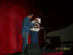 I am going to post some pictures but first a few details. The rod recipients were Rick Rainey. Rick entered the Army in March, 1968 was stationed in S. Korea on the DMZ. I am glad we had men like Rick between us and them. He got out of the Army March, 1970. The second rod recipient was SSgt. Sarah Kim-Mata. Sarah joined the Army in 2003 and served in Afghanistan. She is currently stationed in Wichita Falls, Texas and is serving as a recruiter. She is six months pregnant with her first child. Sarah was unable to attend but her Commanding Officer ( Lt.Christine Porter) accepted for her. Both recipients are avid fishermen and will put these rods to good use. Sadly Silvia was sick and unable to go to Arlington and she really missed a great event. My wife and I were met at the door by Rose Villareal and Charles Stone. Rose takes care of promotional work for the show and Charles Stone is Kraig Parkers manager. We were immediately escorted into a small banquet room along with other guest such as the Mayor of Arlington, radio personalities, and such. Mr. Stone went to where Elvis was talking to some people and brought him over to introduce him to us and he was followed by Buddy Holly and Roy Orbison. They all made a big fuss over my wife and she was eating it up. After pictures and a short interview for the local radio station we were directed to a buffet table with cold cuts and finger foods. I made the presentations just before the show began. Now for some pictures.