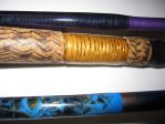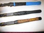 these are some rods i built for wife, darter-in-law, and me. they all have been counter balanced for sensitivety. the two that are matching ftu 10 dollar blank are both spiriled wrapped with one having micros and the other having standard guides. the other rod is a 6' cui rod with fly rod guides. i found that being the normal spacing of your stripper guide is 18-22' from front of reel, that the micro stripper had to be spaced at 22' and it would not gather line as it cast. i steel stand on my theory that the micros have there place, but are not the best thing since slice bread. the micro did let me have more control with my cast, but i had to be concience of my reel setting at all times. where as the large guide allowed me some leway with my cast that i could get away with a bad cast and not pay for it deerly. that is why my darter-in-laws and wifes rods does not have micros, because they are not seasoned fisher person.......bennie